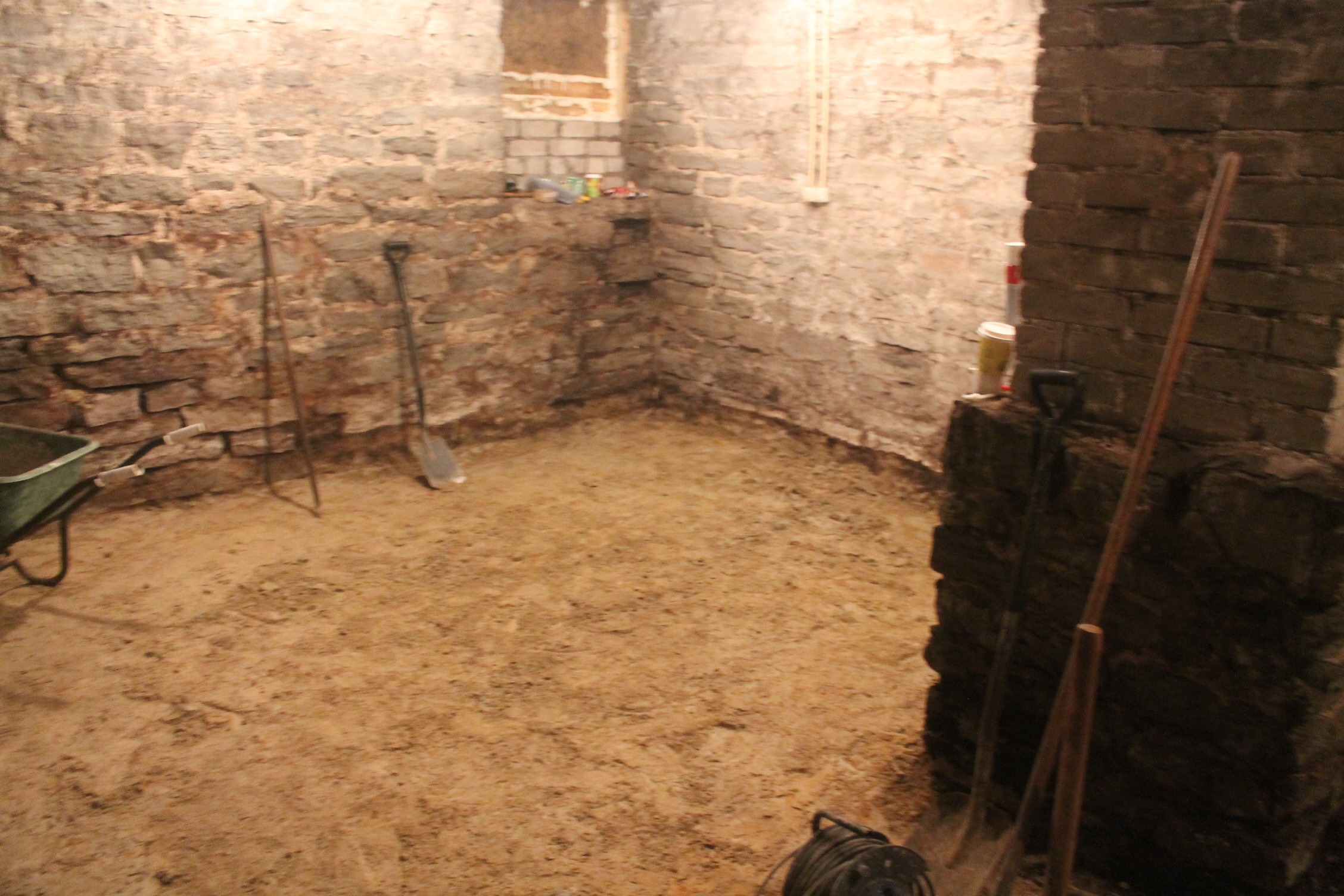 Tööde esimeses etapis teostati keldri süvendamine, et saavutada vajalik ruumikõrgus ning luua sobivad tingimused kaasaegse eluruumi rajamiseks. Seejärel tugevdati olemasolevaid konstruktsioone ning rajati uus põrandalahendus.